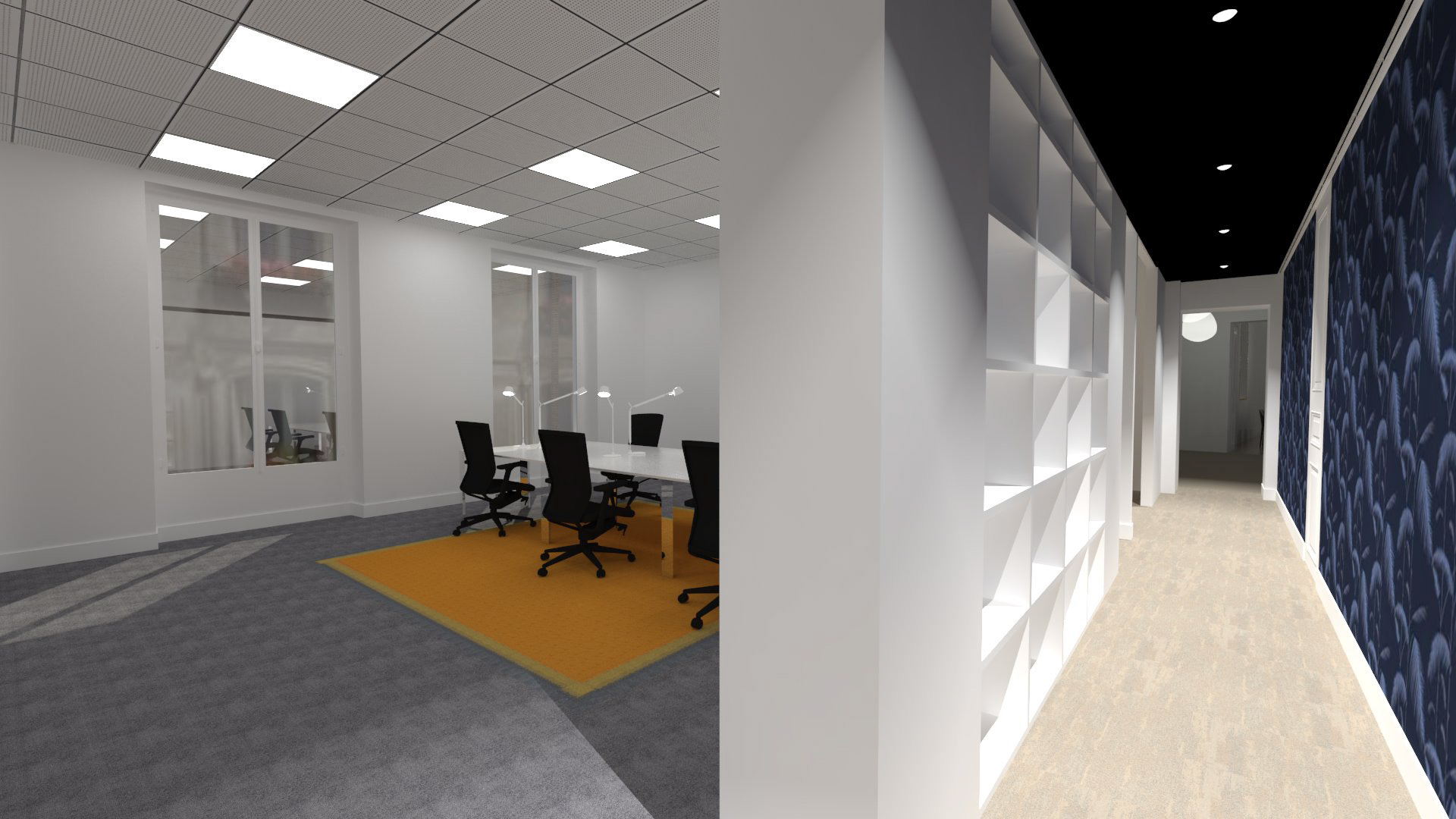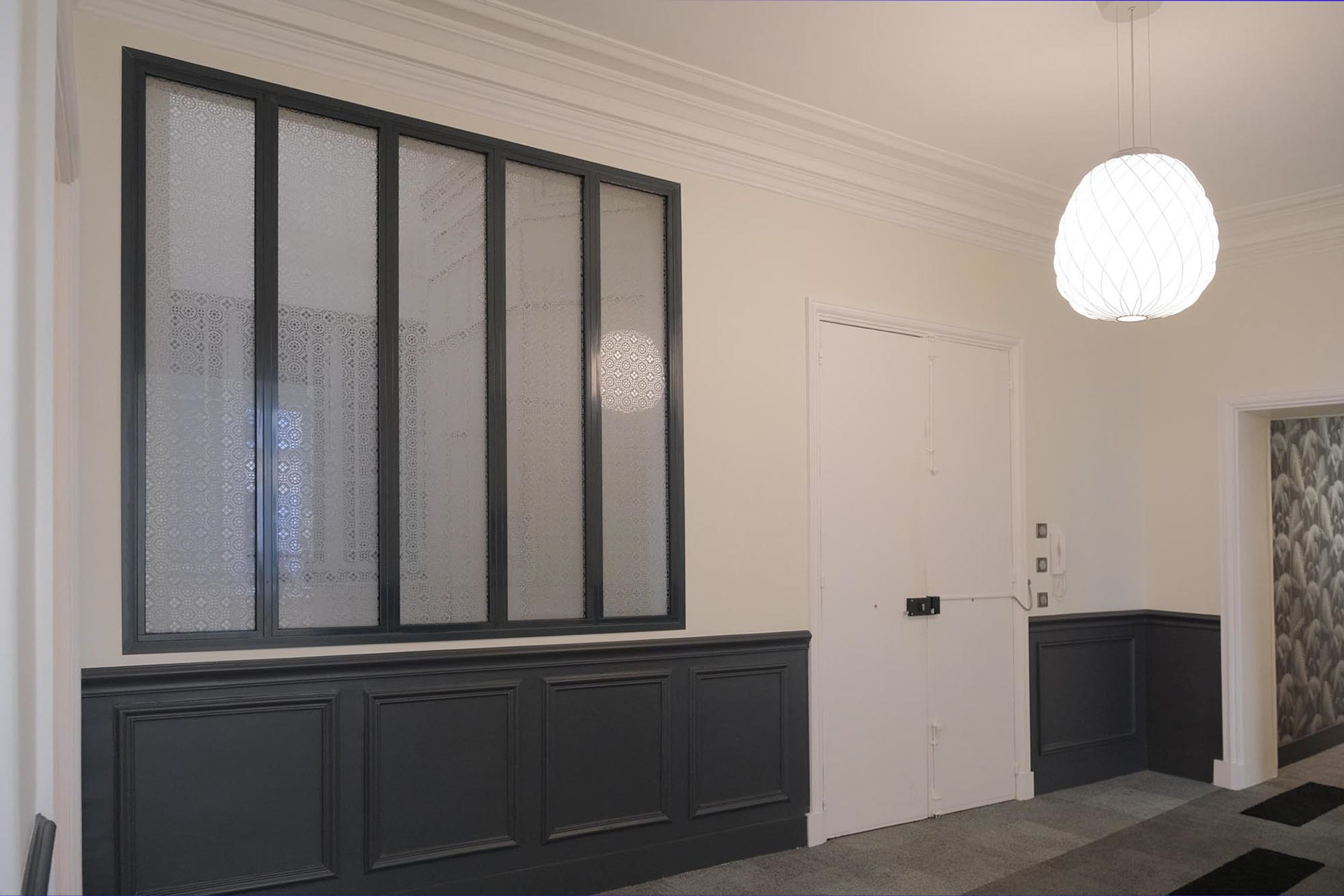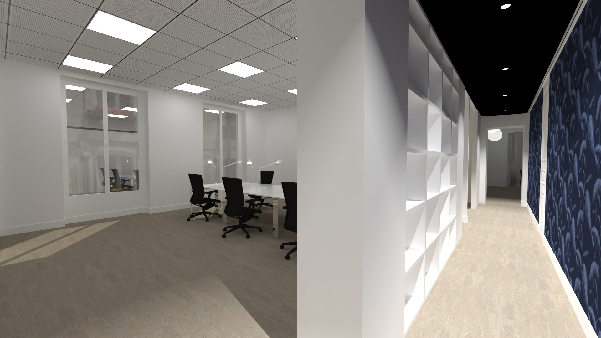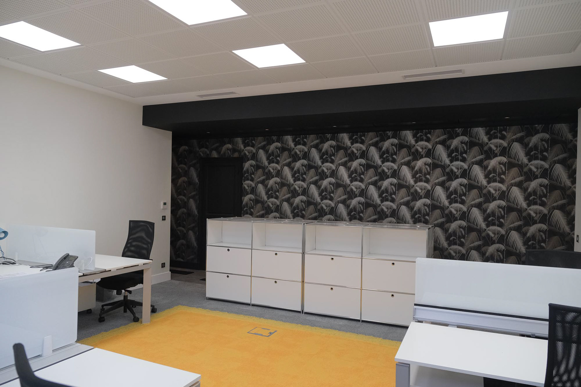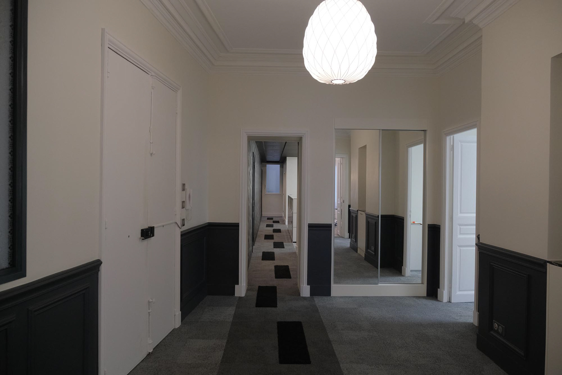 Transformation d'un appartement haussmannien en bureaux paysagés et salles de réunions. Intégration de la climatisation, confort acoustique optimal, décoration.